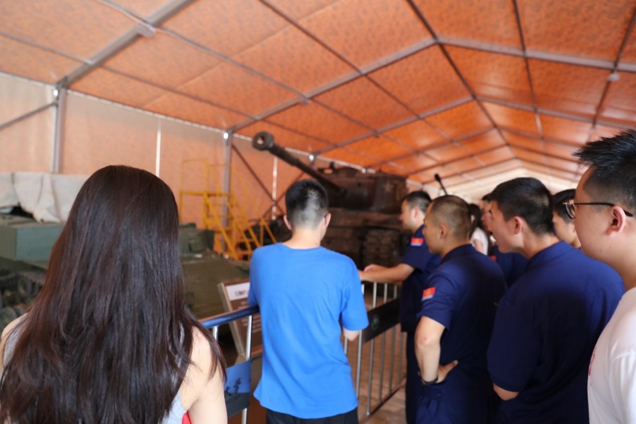 最后一站来到了国防文化广场。作为学校传承“延安根、军工魂”红色基因的重要文化基地,这里展示了一段刻骨铭心的峥嵘岁月。化学与化工学院2022级马骏灏同学为大家带来了一场精彩的讲解,每一辆装甲,每一枚弹孔,都记录着我们国家在危急时刻无数先烈和战士的英勇付出。在参观学习后,各位党员深刻感受到了战争时期的残酷与中国人民的智慧,更加珍惜今日来之不易的美好生活。