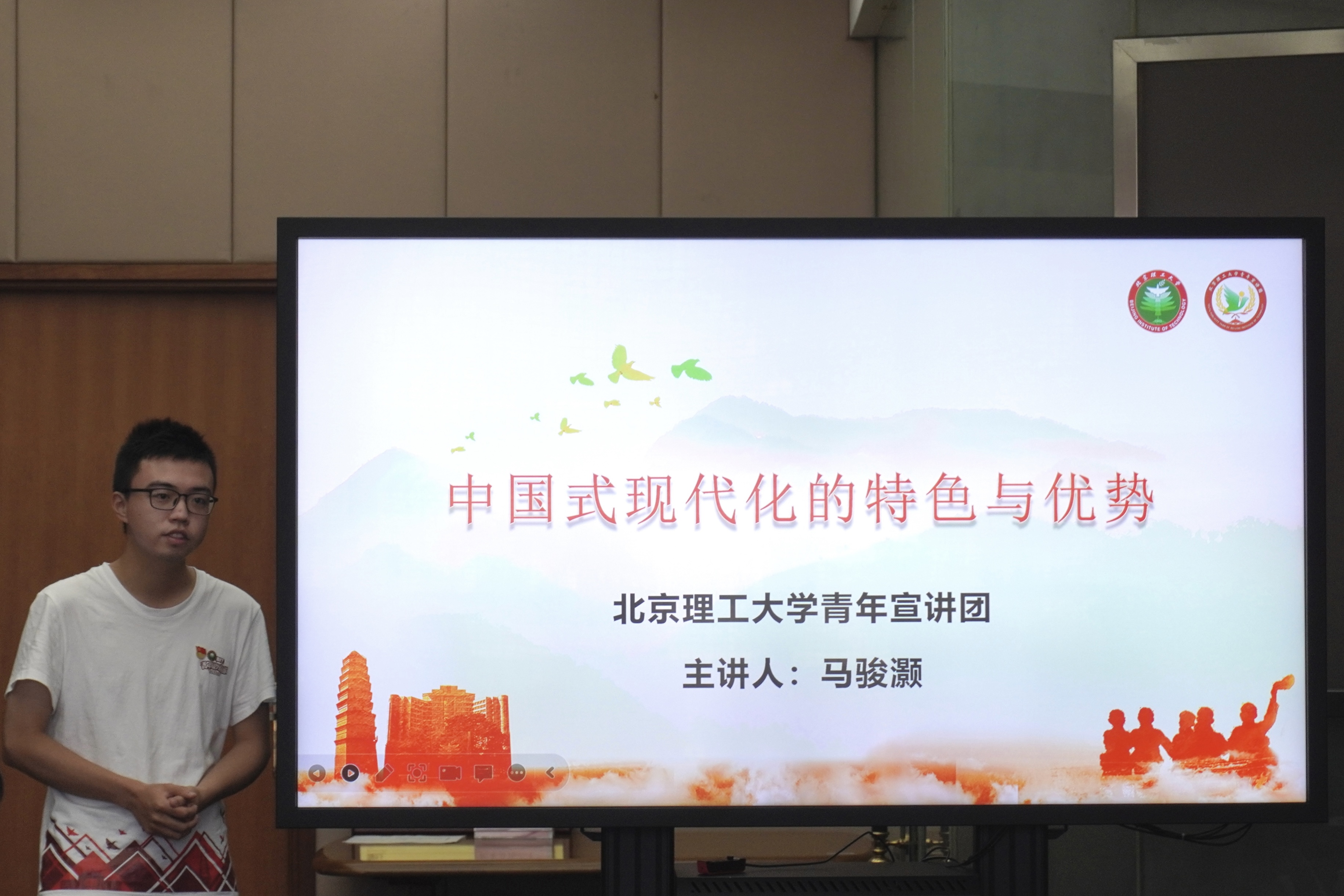 最后,北京理工大学化学与化工学院赴大连红色实践团成员马骏灏讲述了北京理工大学的校史,带领大家共同学习了二十大精神并介绍了中国式现代化的有关内容。实践团全体成员共同参观了大连博物馆。