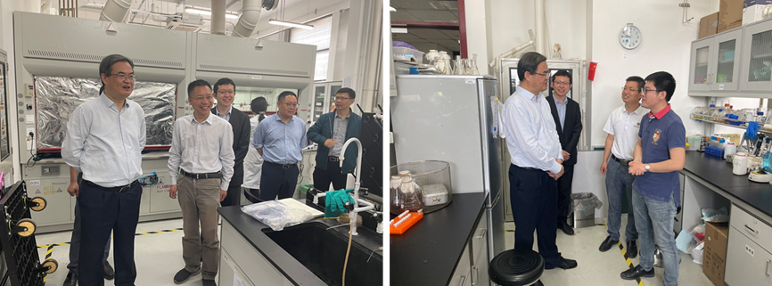 2021年5月19日上午,张军校长来到良乡校区工业生态楼化学与化工学院调研,把脉学院综合改革和双一流学科建设。学校党政办公室副主任武楠、科学技术研究院副院长刘昕戈、资产与实验室管理处副处长栗兴陪同调研。