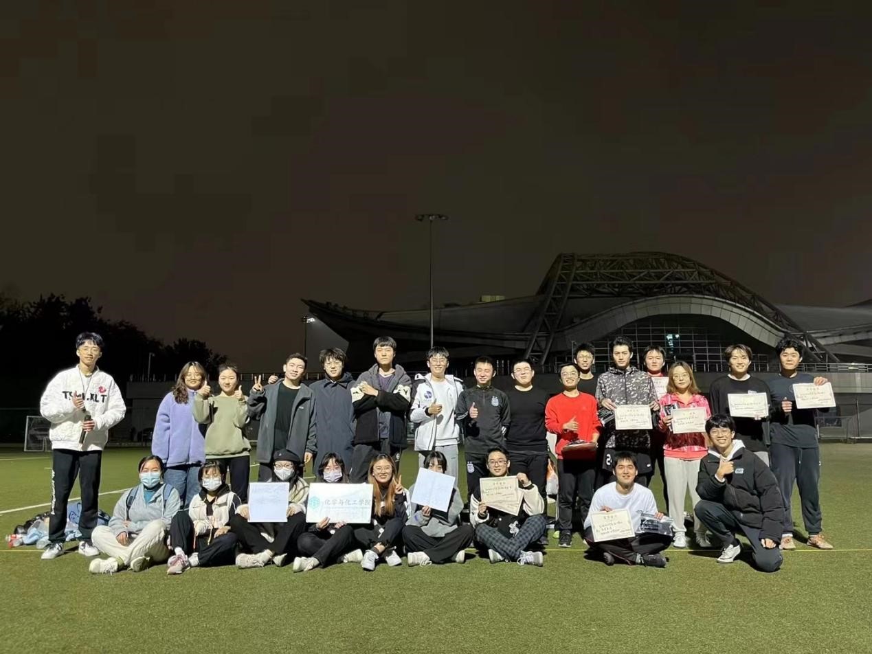 2022年11月,化学与化工学院研究生飞盘队正式成立。飞盘队创办的宗旨是让同学们在科研之余强身健体,收获友谊,发扬“盘不落地,永不放弃”的不屈不挠的体育精神。化院飞盘队参加校级 “蓓蕾计划”第一届飞盘赛,获得校级二等奖。欢迎感兴趣的朋友来操场一起玩耍!