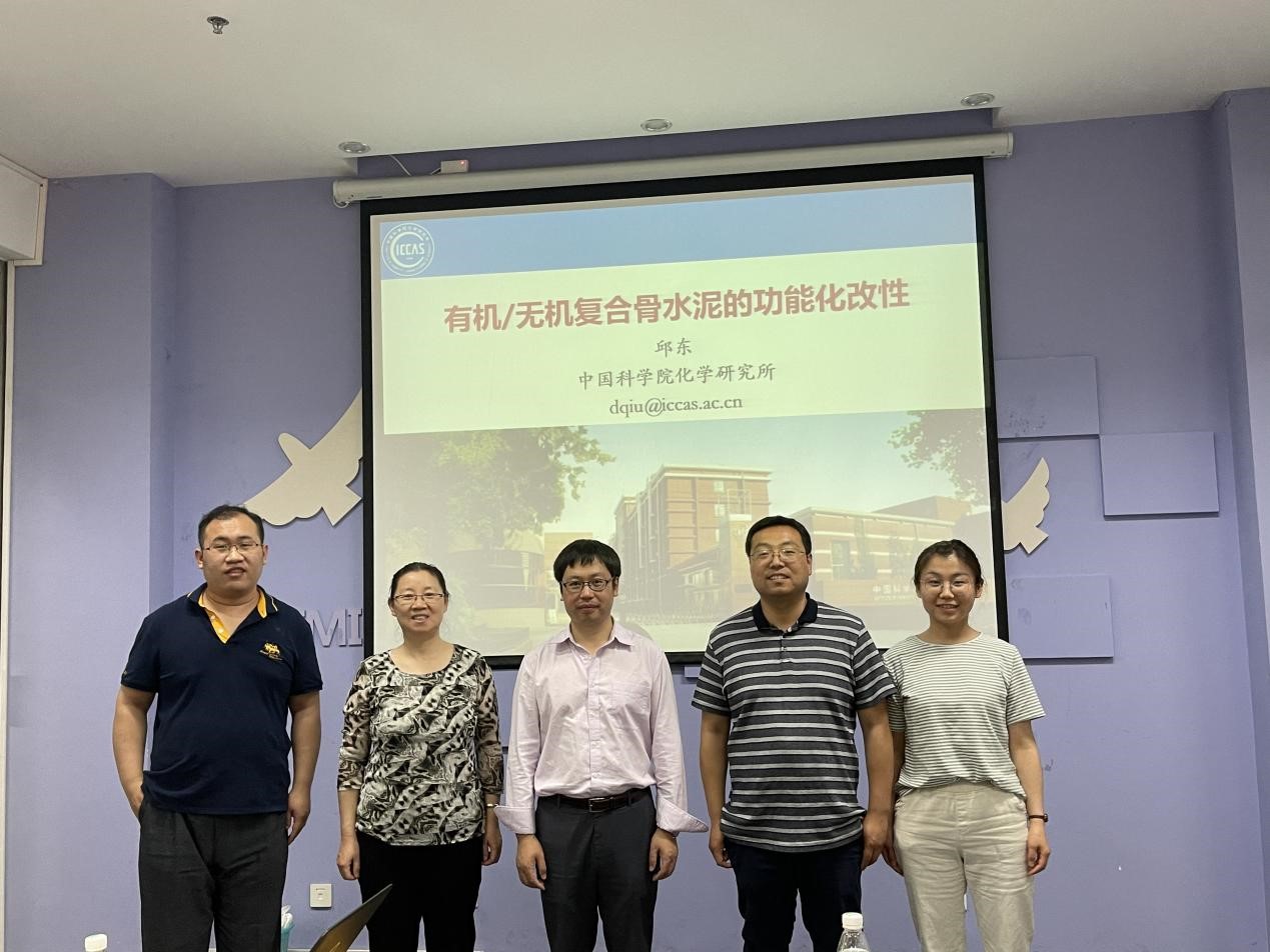 应北京理工大学化学与化工学院金旭辉教授邀请,中科院化学所邱东研究员于2021年6月2日下午14:30在良乡校区工业生态楼8层明理厅,作了题为“有机/无机复合骨水泥的功能化改性”的精彩学术报告。报告由金旭辉老师主持,支俊格、高广鹏、贾志宇老师以及20余名同学参加了此次报告会。