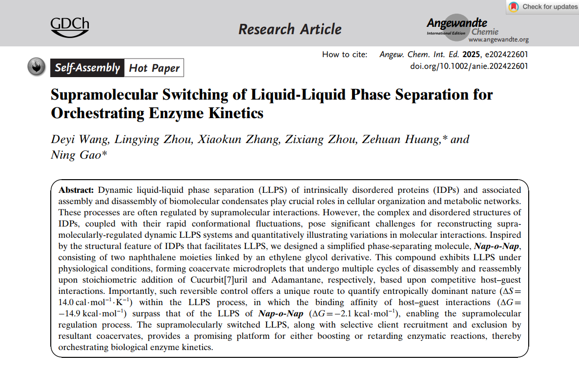 相关论文发表于Angew. Chem. Int. Ed.,并被选为Hot Paper。论文第一作者是北京理工大学23级硕士研究生王德仪,通讯作者是北京大学的黄泽寰研究员和北京理工大学的高宁教授。