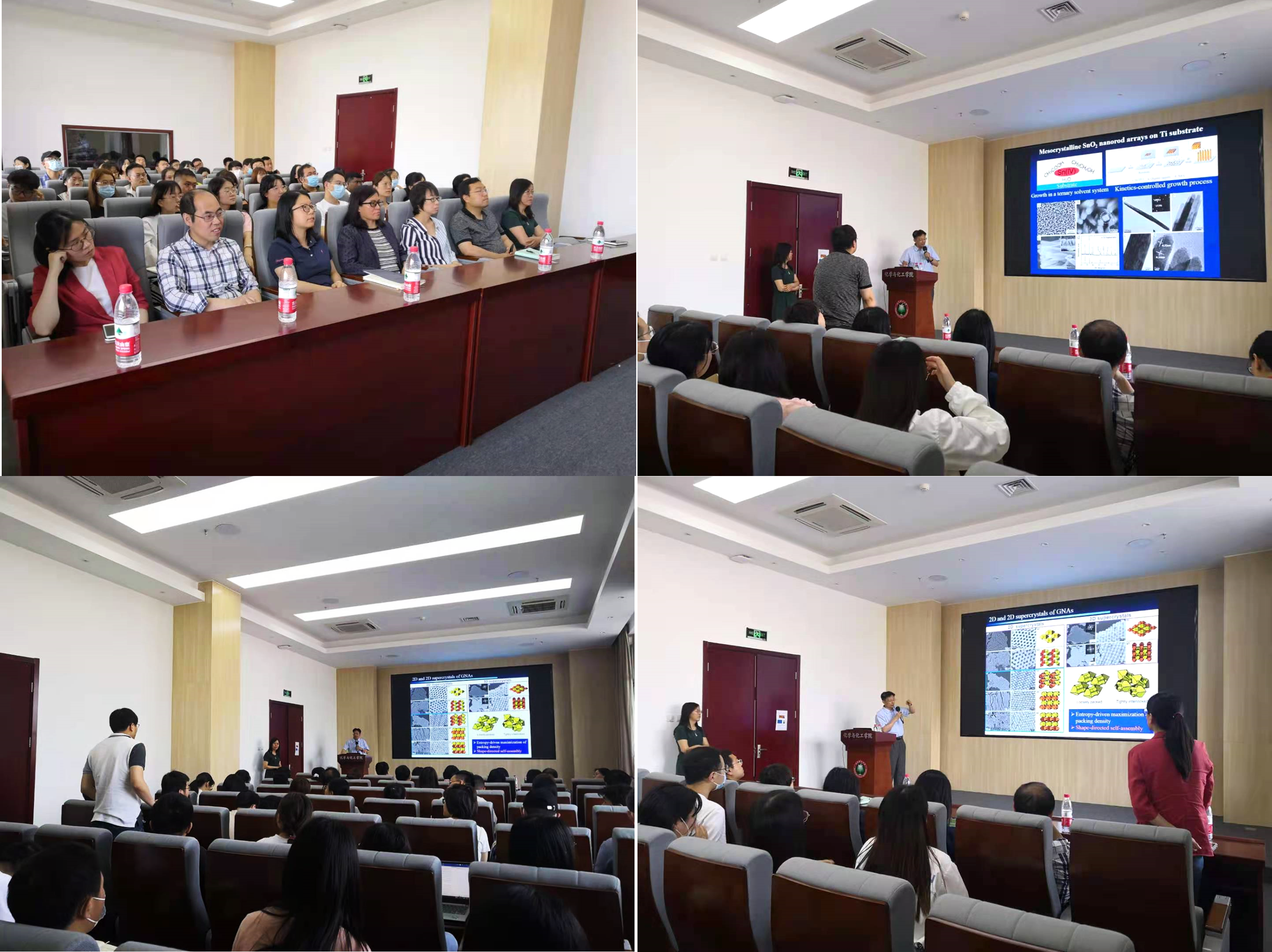 齐利民教授围绕纳米阵列和纳米组装体的构筑与应用,介绍其课题组近年来在氧化物低维纳米结构阵列的溶液相可控生长与性能研究、基于单层胶体晶体模板法的纳米碗阵列的可控制备与性能研究、非球形纳米粒子的可控组装与性能研究等三个方面的研究,并着重讲解了所制备的纳米阵列及纳米组装体在锂离子电池、电催化、光电化学分解水、光电探测器、太阳能电池、光子晶体传感器、SERS检测、等离激元超材料等领域的潜在应用。