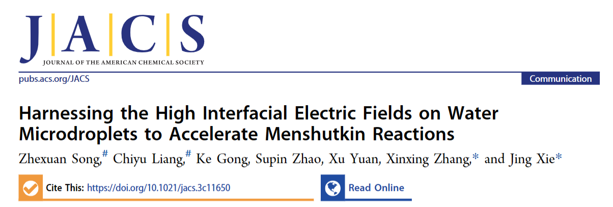 近日,北京理工大学化学与化工学院谢静教授团队和南开大学张新星教授团队合作,在微液滴加速有机化学反应方面取得进展。相关研究成果以“Harnessing the High Interfacial Electric Fields on Water Microdroplet to Accelerate Menshutkin Reactions”为题发表于国际权威期刊《Journal of the American Chemical Society》。北京理工大学谢静教授和南开大学张新星教授为论文共同通讯作者,北京理工大学为第一单位。该研究课题得到了国家自然科学基金项目、北京理工大学特立青年学者项目等资助。