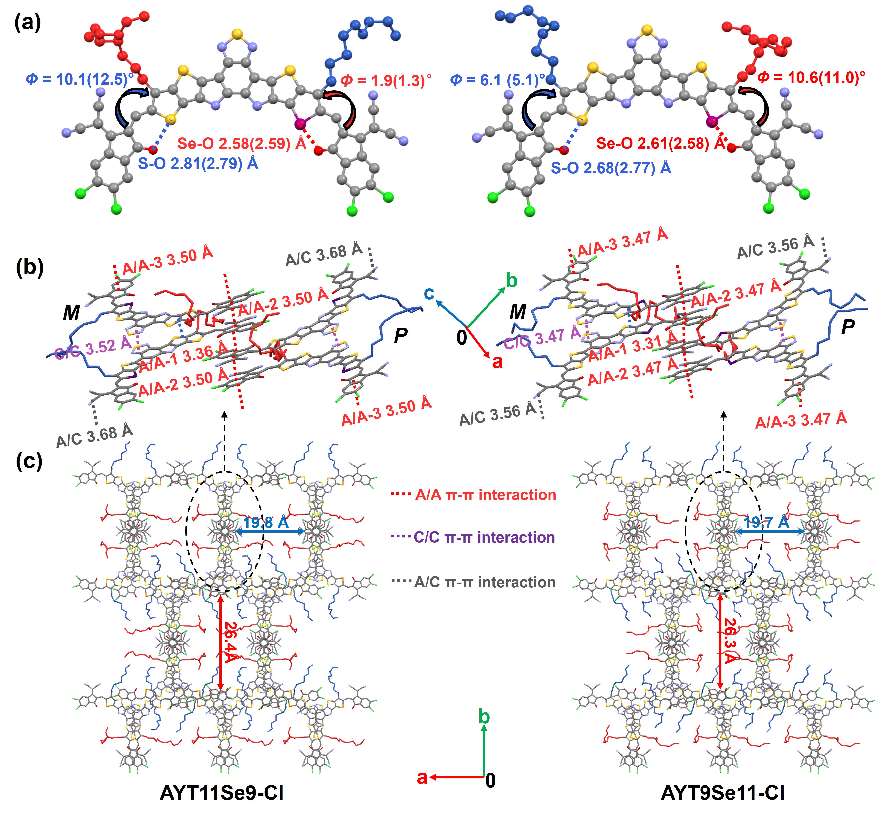 图2:两个硒吩类受体材料的晶体堆积图对比