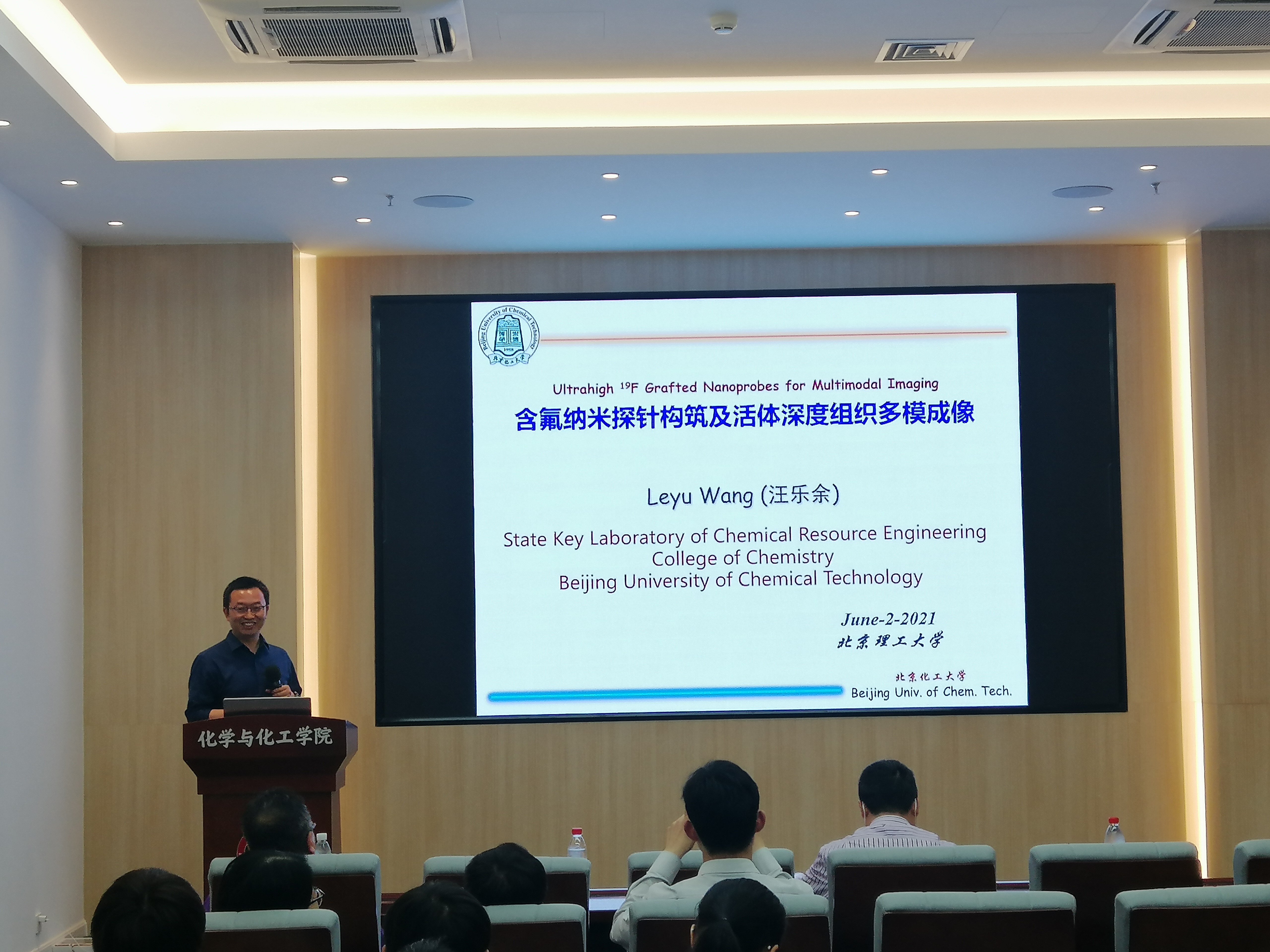 应北京理工大学化学与化工学院邀请,北京化工大学汪乐余教授于2021年6月2日下午15:30在良乡校区工业生态楼118报告厅,作了题为“含氟纳米探针构筑及活体深度组织多模成像”的精彩学术报告。报告由杨国昱老师主持,近百名化院师生参加了报告。