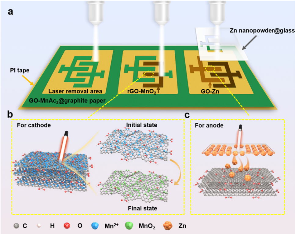 图1. 平面GO-Zn//rGO-MnO2 MBs的制备及原理图