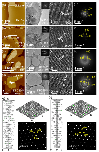 本文采用“自下而上”的方法,在铜箔表面通过炔-炔偶联反应,制备了具有可调孔径的基于TAB的类石墨炔二维结构(TAB-GDY)。通过机械超声法制备得到约4 nm的超薄TAB-GDY膜,选区电子衍射(SAED)呈现明显的六边形对称模式,证明了TAB-GDY薄膜的结晶性。结合实验的SAED、DFT计算的晶胞参数、堆积结构建立和SAED模拟,确定了TAB-GDY层间采用了多重堆积的方式。