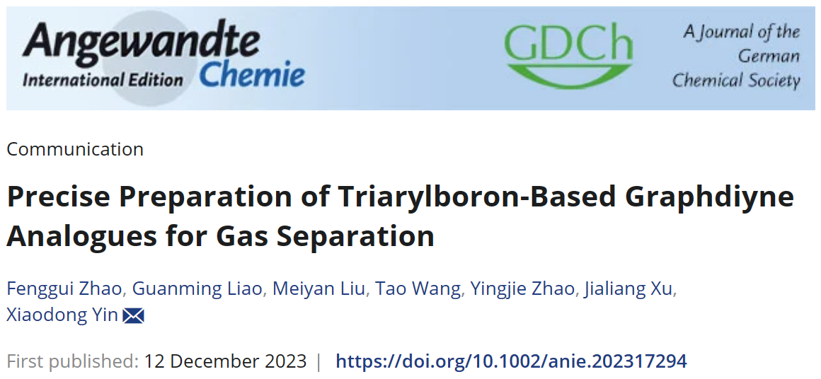 近日,北京理工大学化学与化工学院博士生赵丰贵第一作者身份在国际顶级期刊《Angewandte Chemie International Edition》发表题目为“Precise Preparation of Triarylboron-Based Graphdiyne Analogues for Gas Separation”的研究论文(DOI: 10.1002/anie.202317294)。北京理工大学为论文第一通讯单位,北京理工大学化学与化工学院尹晓东特别研究员为通讯作者。