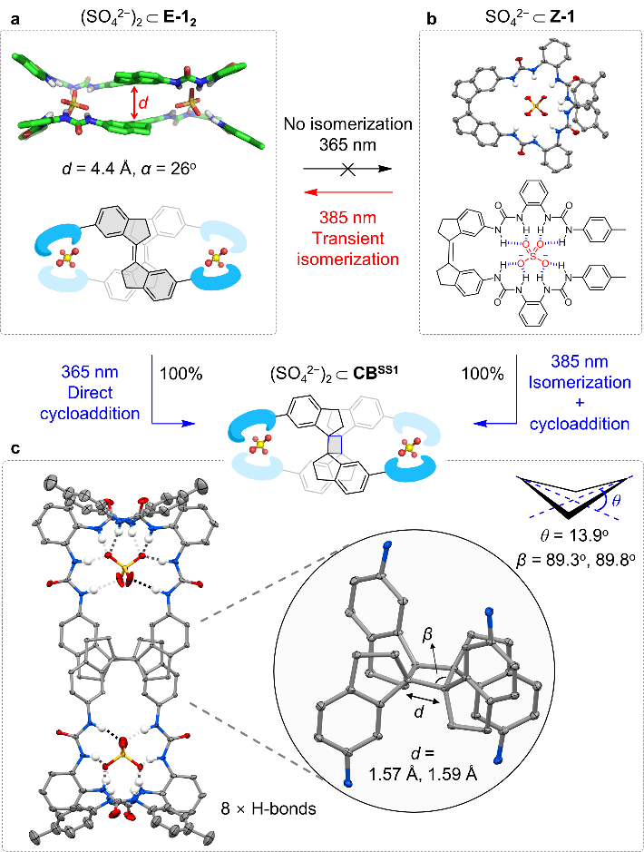 图 1多氢键网络的阴离子配位驱动的刚性二苯乙烯[2+2]环加成。