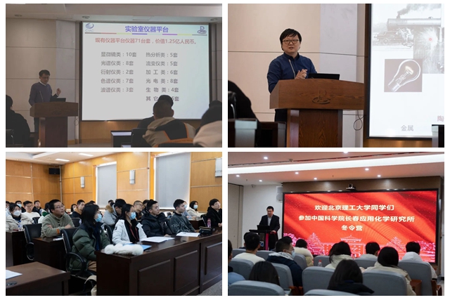 开营仪式在教育大厦举行。应化所副所长逯乐慧致欢迎辞,代表应化所对北理工青年学子参加应化所2023年冬令营表示诚挚的欢迎。逯乐慧简洁精炼地介绍了所情所况,他希望同学们能够在三天的时间里积极与老师们交流,认真聆听、学习和感悟,了解应化所的科研实力、感受研究生的科研生活、增加对科学研究的热情,怀揣历史使命为祖国的科研事业添砖加瓦。北京理工大学化学与化工学院党委副书记、副院长张锋简要介绍了本次社会实践团的成团过程和人员组成,并对北理工学生社会实践基地---应化所的大力支持表示感谢。张锋表示,作为疫情防控进入新阶段后第一个来到应化所参观访学的高校实践团,希望各位北理工学子能够把握住这次参观访学的机会,积极参与、多多互动,进而收获知识、收获友情、收获成长,为未来科研之路打下良好基础。教育处副处长李斐向营员介绍了应化所的所情、研究生教育以及招生政策,希望更多热爱科研的北理学子能够加入应化所大家庭,实现个人科研梦想。
