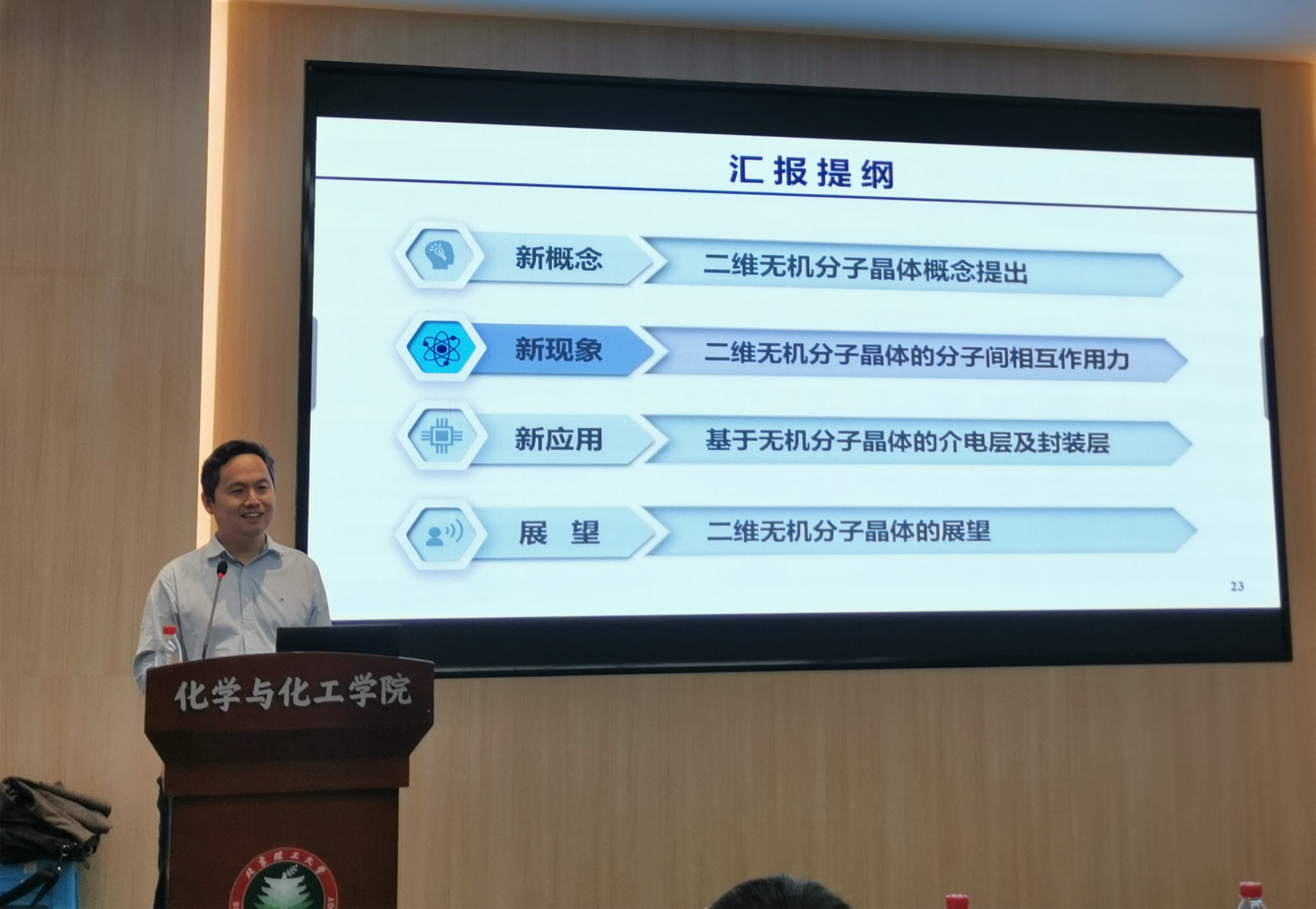 应北京理工大学化学与化工学院邀请,华中科技大学翟天佑教授于2023年9月27日做客北理工“百家大讲堂”系列论坛,为我院广大师生带来题为“二维无机分子晶体”的精彩学术报告。本次报告在工业生态楼118会议室进行,由陶军老师主持,近六十名化院师生参加了报告会。