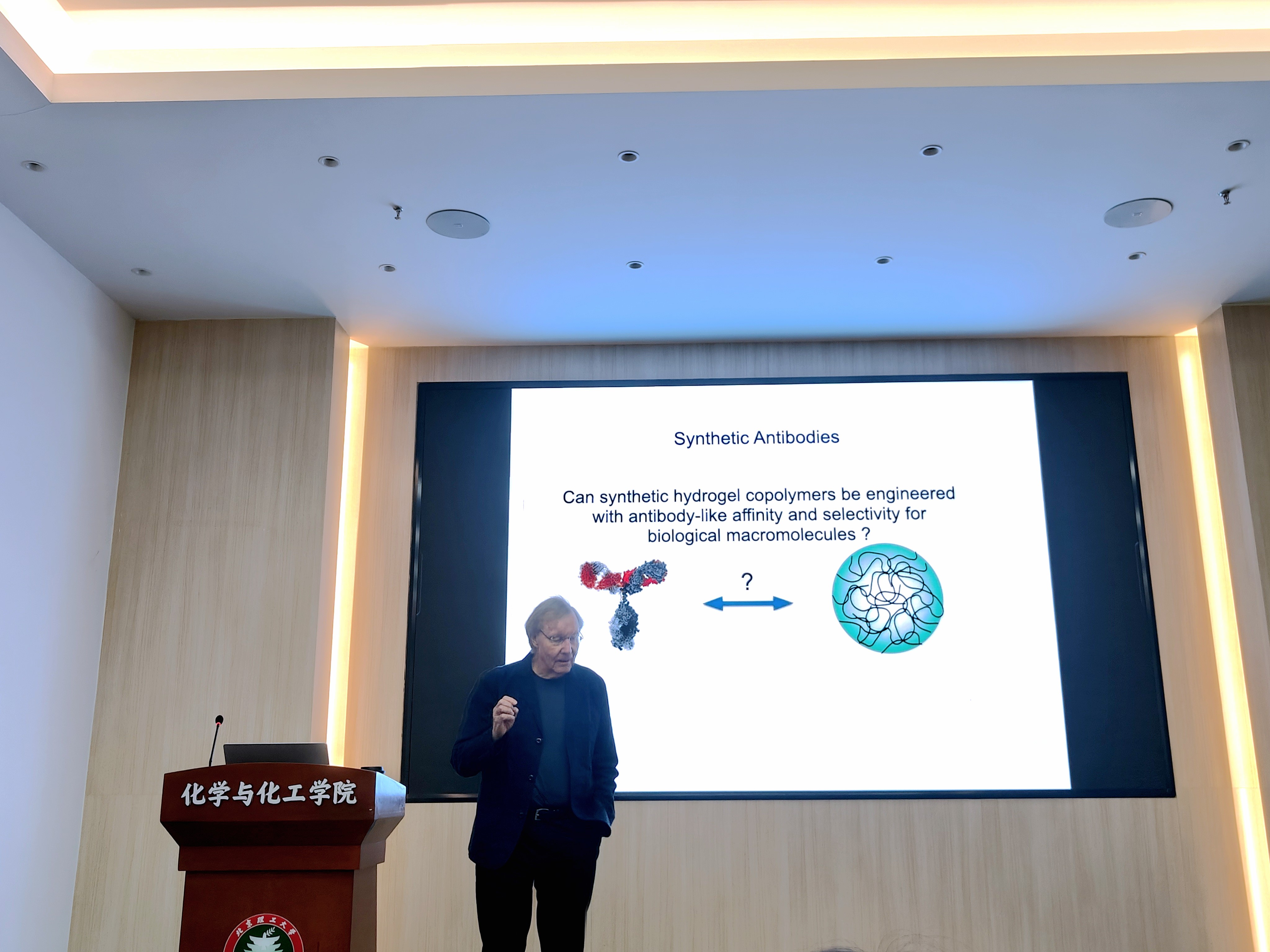 应北京理工大学化学与化工学院邀请,美国加州大学尔湾分校杰出教授Kenneth J. Shea于2023年11月4日上午做客北理工“百家大讲堂”,为我院师生带来题为“Synthetic Antibodies from Low Information Content Statistical Hydrogel Copolymers”的精彩报告。本次报告在生态楼118会议室进行,由薛敏老师主持。
