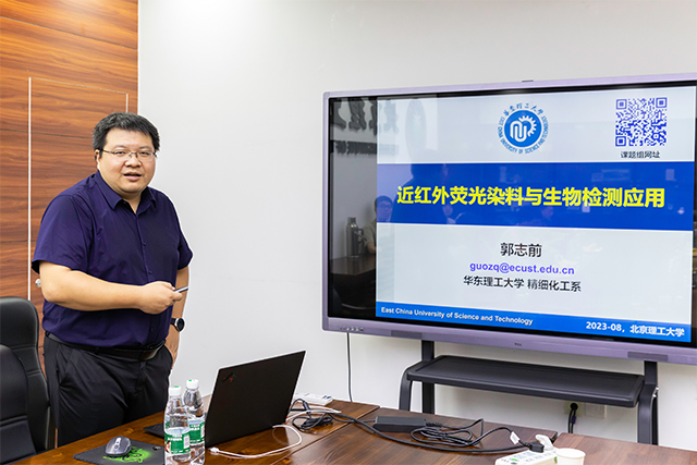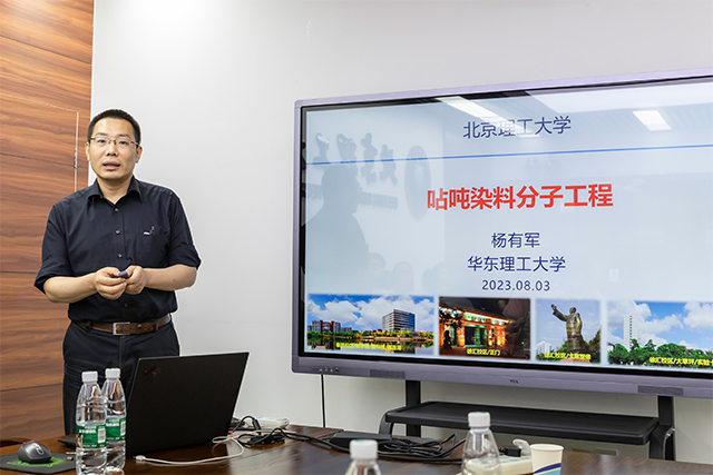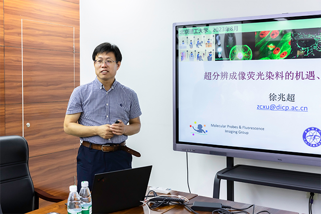 应北京理工大学化学与化工学院邀请,中国科学院大连化学物理研究所徐兆超研究员、华东理工大学郭志前教授和杨有军教授、深圳大学陈小强教授和大连理工大学孙文教授于2023年8月3日做客北理工“百家大讲堂+21世纪学科前沿”系列论坛,为我院广大师生带来题分别为“超分辨成像荧光染料的机遇、挑战与发展”、“近红外荧光染料与生物检测应用”、“呫吨染料分子工程”、“功能染料分子结构设计及在传感与成像中的应用”和“功能染料的光能转化: 癌症的荧光诊断及光驱动治疗”的精彩学术报告。本系列报告在中心教学楼222会议室进行,由张加涛院长和牛广乐老师主持,近四十名化院和材料学院师生参加了报告。