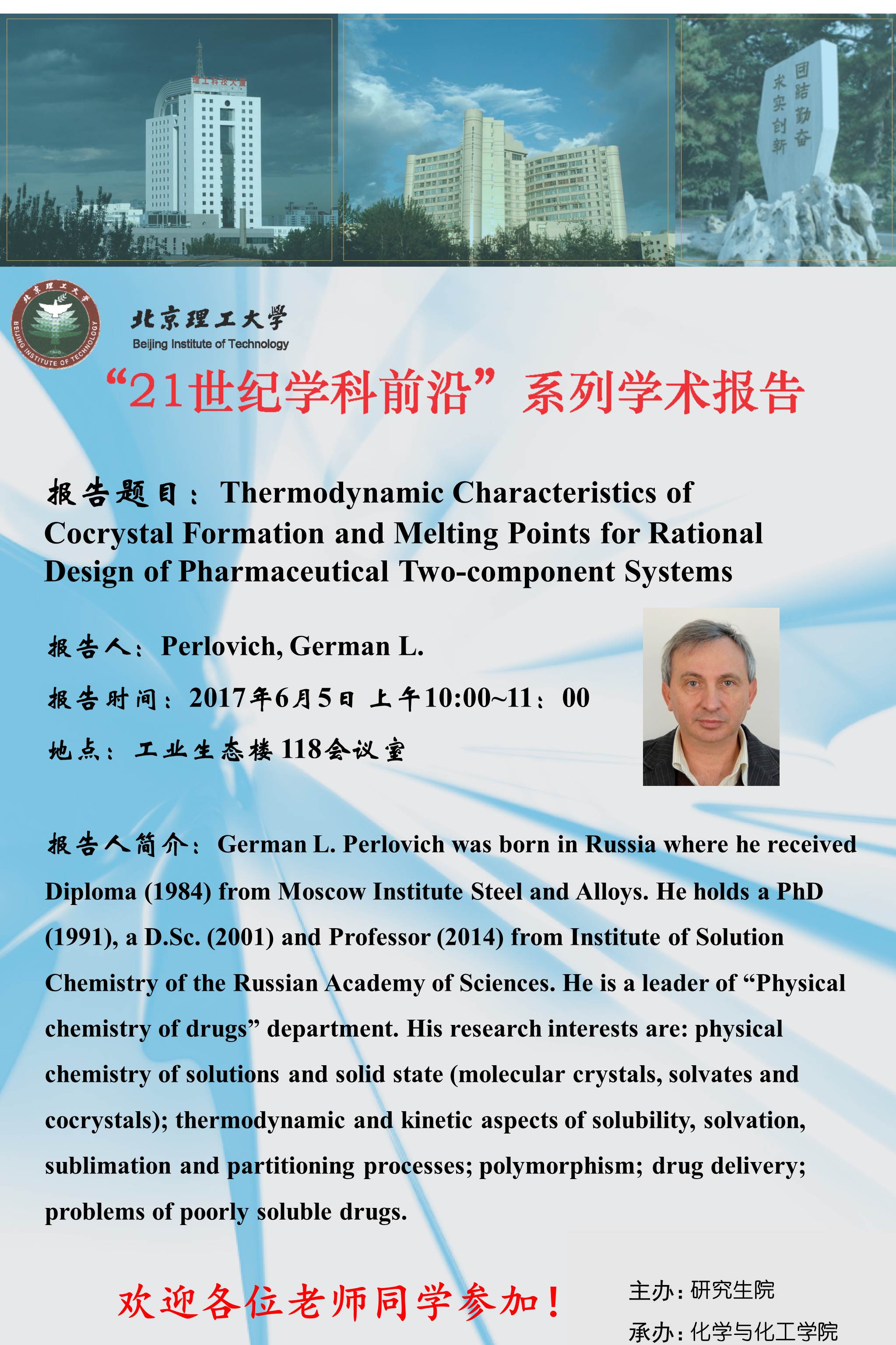 “21世纪学科前沿”German L. Perlovich教授学术报告通知