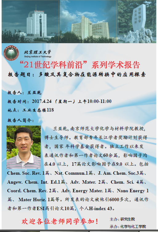 “21世纪学科前沿”兰亚乾教授学术报告通知