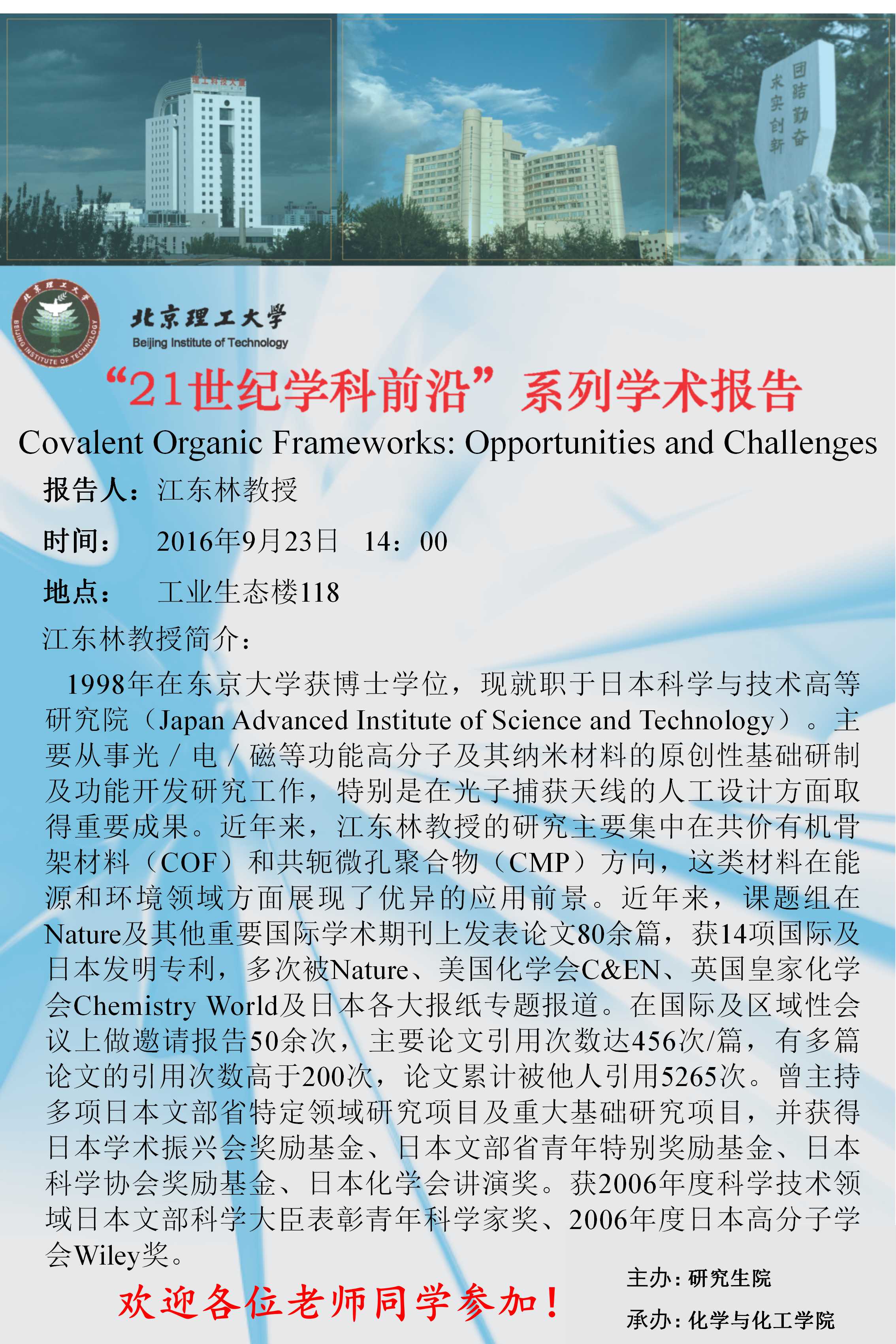 【化学与化工学院】“21世纪学科前沿”江东林教授学术讲座通知