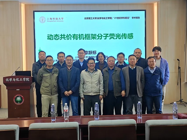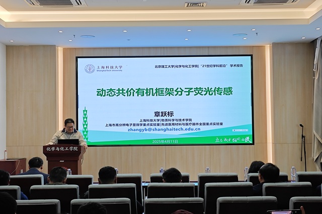 应北京理工大学化学与化工学院邀请,上海科技大学章跃标研究员于2025年4月10日上午莅临北理工“21世纪学科前沿”系列论坛,为我院广大师生带来题为“动态共价有机框架分子荧光传感”的精彩学术报告。本次报告在生态楼118报告厅进行,由陶军老师主持,吸引了众多师生和科研工作者的积极参与。