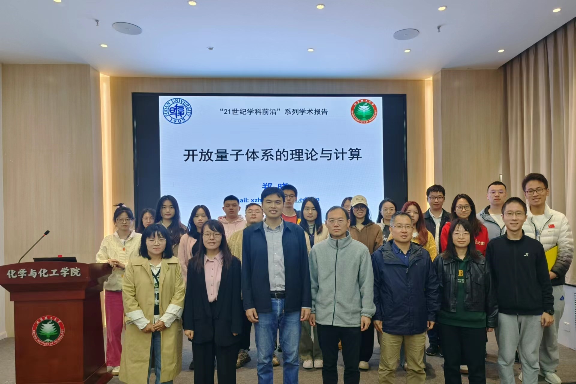 应北京理工大学化学与化工学院邀请,复旦大学郑晓教授于2023年10月27日做客北理工“21世纪学科前沿”系列论坛,并作题目为“开放量子体系的理论与计算”的精彩学术报告。四十余名师生参加此次讲座并进行学术交流。