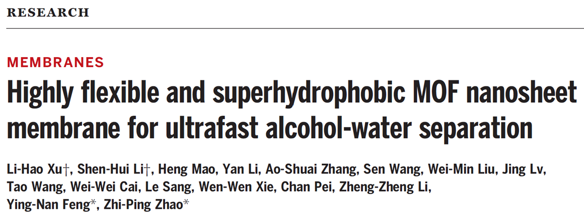 10月21日,北京理工大学化学与化工学院赵之平教授团队在柔性MOF膜制备研究领域取得突破性进展,相关研究成果以“Highly-flexible and superhydrophobic MOF nanosheet membrane for ultrafast alcohol-water separation”为题,在《 Science 》上发表(DOI: 10.1126/science.abo5680),研究团队提出了一种在聚合物基底中包埋晶种进而通过表面晶体诱导生长法精确构筑MOF纳米片膜的新构想,在聚合物基底表面实现了高柔性超疏水MOF膜的层次构建,解析了纳米片的晶体结构及其内部的传质通道,揭示了聚合物与纳米片层在分离过程中的协同机制,突破了柔性MOF膜制备瓶颈,为规模化制备和应用提供了理论依据和技术支撑。该工作第一作者为化学与化工学院化学工程研究所博士研究生徐李昊、李申辉,通讯作者为赵之平教授、冯英楠副研究员,北京理工大学是该工作的唯一完成单位。