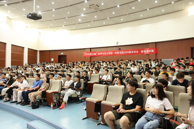 求是书院专职副院长周芳集,化学与化工学院院长张加涛、副书记副院长张锋,副院长支俊格,专业教授代表迟瑛楠、赵娣、陈康成、王涛、张奇、徐熙焱,教学干事赵玥,学院、书院辅导员以及2017级优秀本科生代表、2020级300余名本科生参加此次面对面活动,活动由张锋主持。