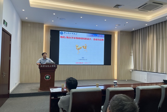 应北京理工大学化学与化工学院邀请,中国科学院大学材料科学与光电技术学院黄辉教授于2023年7月7日做客北理工“百家大讲堂”,为我院广大师生带来题为“有机半导体材料的合成与光电应用”的精彩报学术报告。本次报告在生态楼118报告厅进行,由姚燎原老师主持,近六十名化院师生参加了报告。