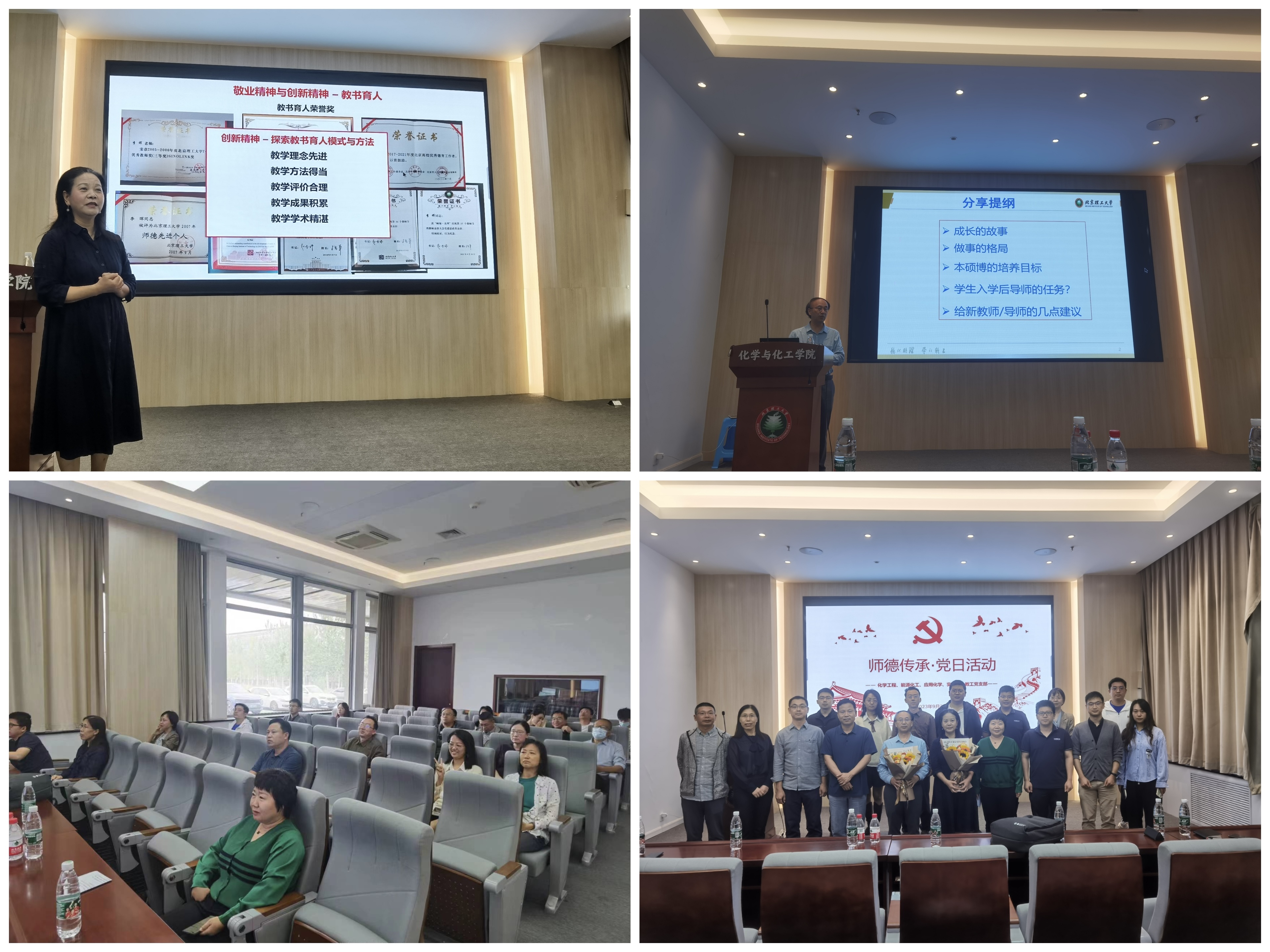 在全党上下深入开展学习贯彻习近平新时代中国特色社会主义思想主题教育开展之际,为学习习近平总书记教师节重要指示精神,大力弘扬教育家精神,2023年9月25日下午,北京理工大学化学与化工学院应用化学、化学工程、实验中心、能源化工教工党支部联合开展了“师德传承”党日活动,该活动在工业生态楼118会议室线下举行。本次活动特邀李晖、赵之平教授分享个人成长经验、教书育人心得、学科发展历史等,旨在加强党员教师的党性修养,传承我校优良师德师风,学院近20余名教师参加。
