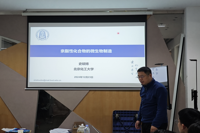 2024年12月23日上午10:00,北京理工大学化学与化工学院成功举办了一场学术性讲座。应北京理工大学化学与化工学院于明加特别副研究员邀请,北京化工大学史硕博教授就“亲脂性化合物的微生物制造”进行了深入探讨。