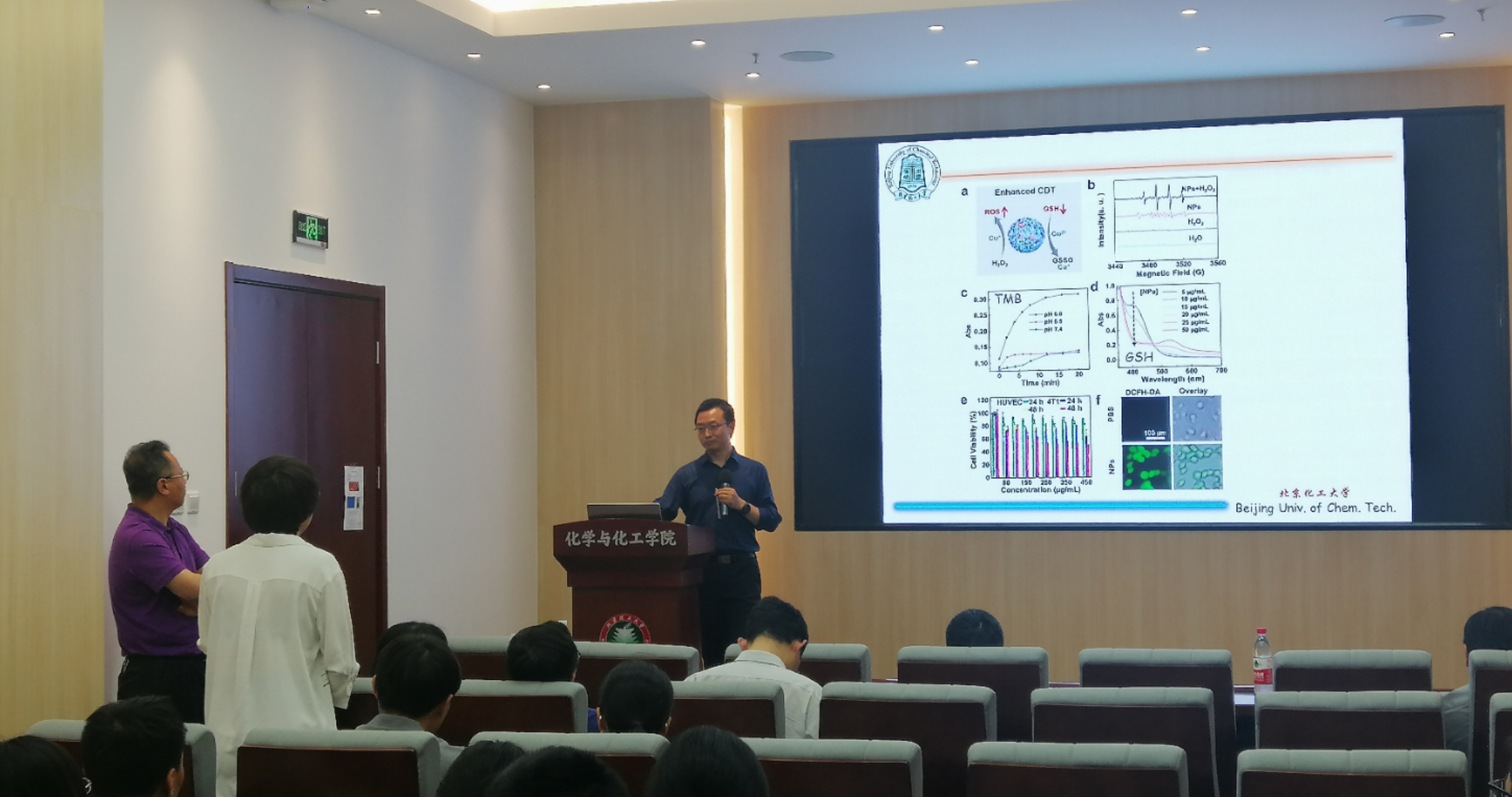 应北京理工大学化学与化工学院邀请,北京化工大学汪乐余教授于2021年6月2日下午15:30在良乡校区工业生态楼118报告厅,作了题为“含氟纳米探针构筑及活体深度组织多模成像”的精彩学术报告。报告由杨国昱老师主持,近百名化院师生参加了报告。