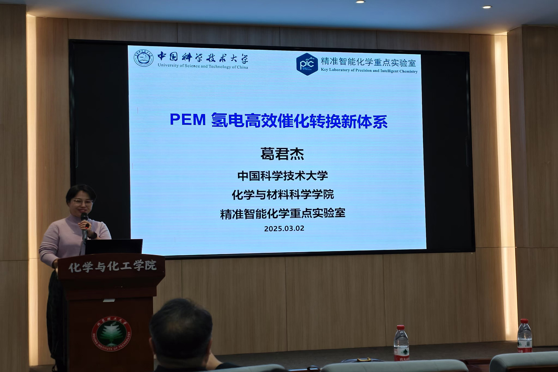 应北京理工大学化学与化工学院邀请,中国科技大学葛君杰教授于2025年3月4日14:00做客北理工“21世纪学科前沿”系列论坛,为我院广大师生带来题为“PEM氢电高效催化转换新体系”的精彩学术报告。本次报告在生态楼118报告厅进行,由杨国昱老师主持,近五十名化院师生参加了报告。