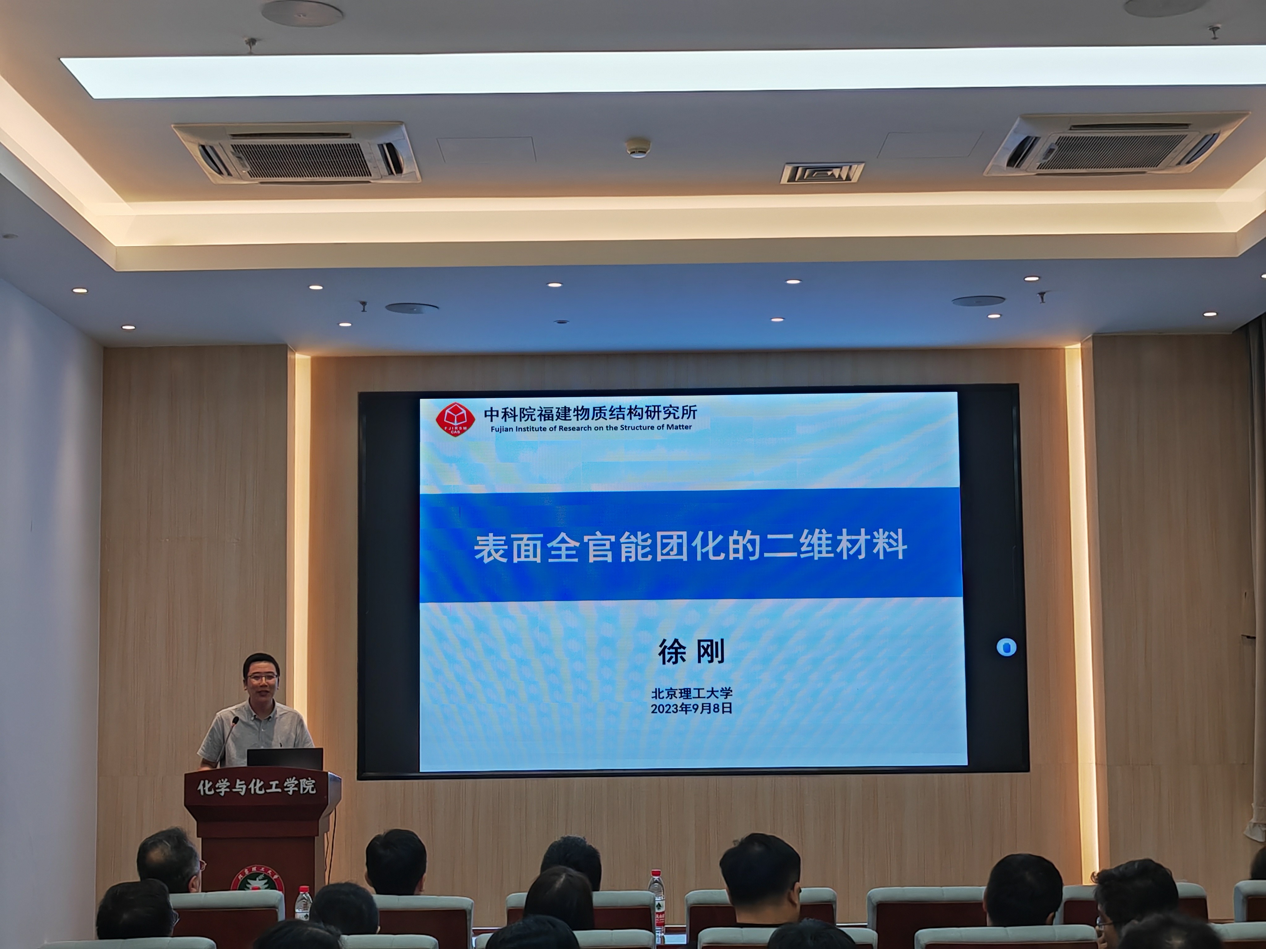 应北京理工大学化学与化工学院邀请,中科院福建物构所徐刚研究员于2023年9月8日16:30做客北理工“百家大讲堂”系列论坛,为我院广大师生带来题为“表面全官能团化的二维材料”的精彩学术报告。本次报告在生态楼118报告厅进行,由杨国昱老师主持,近六十名化院师生参加了报告。