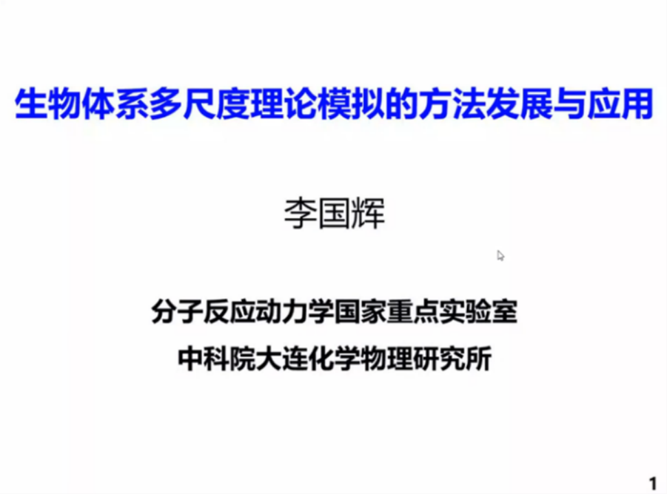 【百家大讲堂】 中科院大连化物所李国辉研究员 “生物体系多尺度理论模拟的方法发展与应用”学术报告