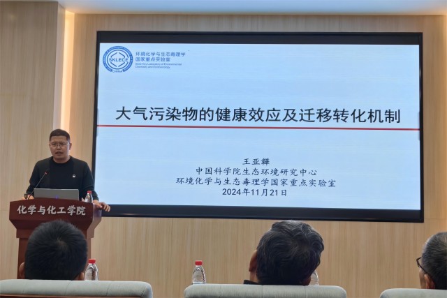 11月21日上午,由北京理工大学研究生院主办,化学与化工学院承办的学术报告于良乡校区工业生态楼118会议室举行。应化学与化工学院张秀辉教授的邀请,中国科学院生态环境研究中心王亚韡研究员与大连理工大学谢宏彬教授到访我校,并分别作了题为“大气有机污染物的健康效应机制研究”和“大气多组分成核机制”的精彩学术报告。三十余名师生参加了此次讲座并进行了学术交流。