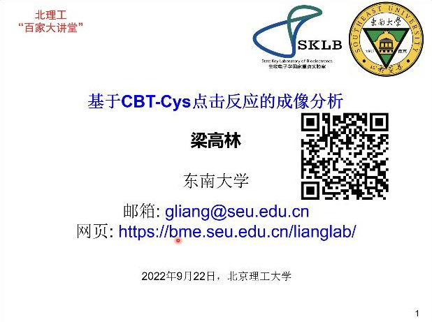 【百家大讲堂】东南大学梁高林教授 受邀作题为“基于CBT-Cys点击反应的成像分析”的学术报告