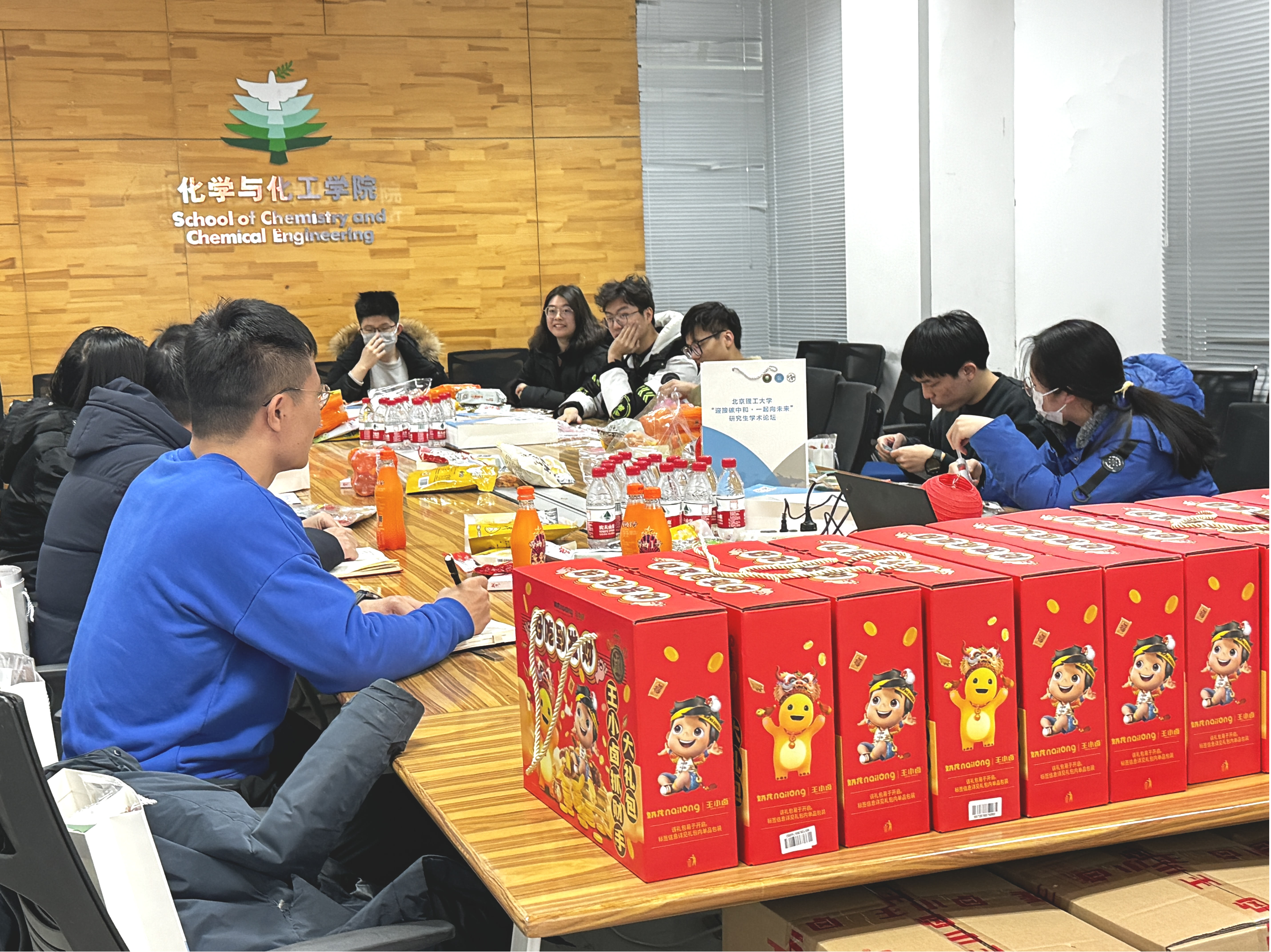 新春新景开新宴,看取新年乐事绵。新春佳节即将来临,为做好春节期间留校学生的服务与保障工作,2024年2月6日,化学与化工学院于工业生态楼举办2024年新春慰问会。学院党委书记王振华、党委副书记张锋、团委书记雷蒙与留校学生齐聚一堂,共同交流近期的留校生活和新年计划。